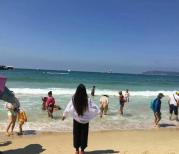 大东海是介于三亚湾和亚龙湾之间的海水浴场,不如亚龙湾但比三亚湾好,海水还算比较清,但浪还是有点大,游泳需注意安全,离市区比较近,离第一市场也近。有些植被、雕塑和小朋友的游乐设施,不过感觉比较贵就没去了,旁边不远是鹿回头公园~