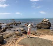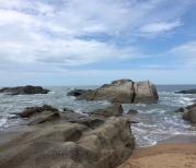 在网上买了大小洞天的门票,价格比较实惠。这里环境很美,跟海月广场那边的海不一样,这里礁石比较多,建议穿凉鞋下水不然会划伤脚。海水很蓝很漂亮,拍照的好地方,有很多婚纱摄影都在这里取景。带儿子慢游这里很惬意。山不高慢慢爬上去不会感觉累。