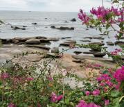涠洲岛鳄鱼山公园景色很美,全程不走回头路,走走停停我们用了三个多小时,风景不错,对面就是南湾海滩和码头。特别是海水特别清澈。还有很多漂亮的、正在开花的仙人掌。礁石和火山石傻傻分不清。回程中有观景台,可以看到月亮湾的全景。