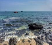 分界洲岛的海水真是美,从山上看下去,岸边都是绿蓝白的,一点都没有污染!真的!太安逸了!保护得太好了,希望下次,不,永远,希望永远都能这么好!站在英雄亭往南望去,远处海面出现一条长长的海水颜色分隔线,一边的海水蓝些,另一边略浅,难道分界洲连海