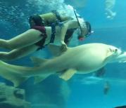 北海海底世界很不错,值得一游,每天有若干场表演,有人与鱼共舞喂鱼的,还有在海洋剧场,三层楼高的水族展缸内表演海底婚礼、人鲨共舞,人鲨共舞的鲨鱼很好玩,特别带孩子去能培养了解海底世界,长知识。