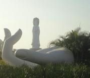 南山海上观音像坐落于离海岸约两百米的人工岛上,其实在飞机上就俯瞰到这座观音像,高大宏伟庄严神圣,海岸线风景优美,与神圣的观音像遥相呼应。虽然我是无神论者,仍可以感受到庄严肃穆的观音像表情里的慈悲。