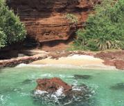 涠洲岛鳄鱼山公园是涠洲岛上唯一需要检票的景点,位于岛西南段的海边。火山喷发厚的沉积岩矗立在海边,仿佛看到了好几十个世纪。有个火山口,但很小有点坑,谁知道是不是真的。海景挺不错的,还有小沙滩和小岩洞。
