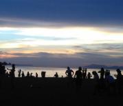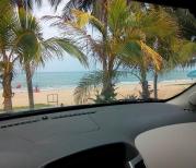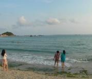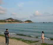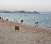 过三亚湾度假区真的是绵延17公里的沙滩海岸,许许多多的新人在拍照。走到三亚湾的沙滩,有许多许多碎石子和碎贝壳,不敢光着脚走,不然很疼。而海棠湾的沙子听说会没有这里的细,因为下午就要去海棠湾,所以没在三亚湾久留,走了几步就回岸上了。海滩边都有