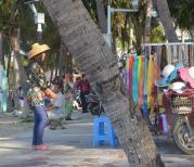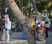 在网上订的热带岛宾馆就在三亚湾度假区的外贸路小吃街上,走路到海月广场就5分钟,很方便。傍晚的海霞更是漂亮,海上升明月没看到,但看到落日与晚霞同辉煌的景象也是曼妙的一种享受!伴你走到天涯海角!再看夕阳西下!足矣!