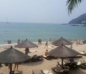 大东海的沙滩面积没有多大,建议大家还是穿洞洞鞋或者什么,这里的沙滩很扎脚,感觉都是珊瑚和贝壳的细碎片。海滩边一大半都是俄罗斯人,有种在索契的错觉,沙滩的质量不错的,沙子比较细,有专门的泳区,岸边就是各种海鲜,吃货们比较喜欢了。