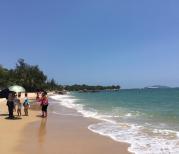 大东海是免费景区,三面环山,一面朝向大海,阳光沙滩,蓝天白云,碧海青山,翠绿椰林,洁白沙滩,还可以游泳。距离市中心很近,交通很便利,吃住都挺方便的,游人也多,看完美景就打车前往第一市场吃海鲜,非常方便。值得一来!