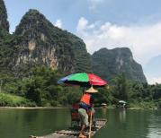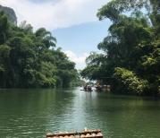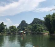 在遇龙河大约漂了一个小时,一路景色优美,两边绿水青山,空气清新,水流比较平缓,真的很好玩,景色好美,师傅很热情,我给了10元小费他,他不停告诉我们那山的“秘密”,也时不时唱山歌我们听,真的很好玩。