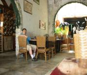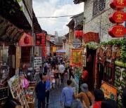 过年时来黄姚古镇的人太多,有点不喜欢。这里左右两边是古朴的老屋商铺,多是两层建筑,有些寂落的青石街已没有了昔日喧哗与繁华,除了游客的脚步,偶尔的一二句吆喝有些悠杨,却更让人感觉宁静。雕栏、门楣色彩也不再鲜艳,但还是依然能感受到旧时的熙攘和繁