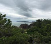 亚龙湾热带天堂森林公园景色很美,小孩和60岁以上老人不能过索桥。站在玻璃栈道的任何一处张望,千姿百态的岩石、原始幽静的雨林、波平浪静的海湾,蓝蓝的天空、清澈的海水、洁白的沙滩等美景尽收眼中。