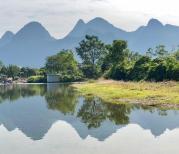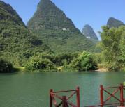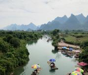 遇龙河是漓江在阳朔境内最长的一条支流,全长43.5公里,沿河风景秀丽。遇龙河漂流是比较常见的项目。因我们已经坐过漓江漂流竹筏,因此遇龙河段选择骑行。阳朔的宾馆一般都有自行车出租,大约3小时可以骑完了。