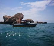 来到天涯海角,才发现这才是真正的海南景色:碧海,蓝天,白云,礁石,椰树,沙滩,帆船,游船,还有头顶的飞机。每个人都是愉悦的,放松的,休闲的,友好的。乘船航行在海浪间,安全又刺激,近观日月石,天涯海角,岸上椰树与草屋,远眺南山观音,已是身心畅