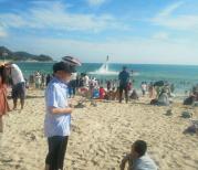 大东海位于市中心,这里“水暖沙白滩平”,早已使三亚大东海蜚声海内外,成为人们冬泳避寒胜地和度假休閒者进行潜海观光、海水浴、日光浴的理想之地。乘公交到夏日百货站下来就是大东海广场,游客真的暴多,很是热闹。