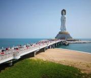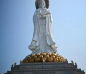 南山海上观音像高108米,由赵朴初选址建造,2005年建成。在美丽的神话传说和佛教故事,在浩翰的南海上有着吉祥仁慈普渡众生的南海观音菩萨,她脚踩莲花,腾云驾雾,驰骋在无边的南海上。每每遇到困难,或者女子需要求子,人人纷纷烧香祭拜南海观音,祈