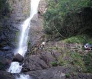 姑婆山国家森林公园风景如画,高约30米的仙姑瀑布,水质洁净清凉,可以直接饮用。瀑布落差80多米,宽5米,分上下两段,轻飘而止,如烟似雾,奇形怪状的树木点缀着断崖绝壁,与飞瀑溪流组成一幅美丽的山水画卷,非常值得一游。