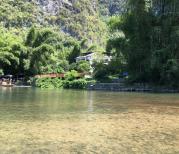 游遇龙河分了三步,第一是白沙的世外桃园,第二是徒步遇龙河。选取的是古岸悦风酒店经岭上村到骥马码头这一段,沿省道前行,一路景色怡人,风光迤逦。第三就是十里画廊的工农桥观赏。人说“桂林山水甲天下,阳朔山水甲桂林”,我说“遇龙山水甲阳朔”。
