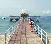 三亚西岛景区风景美丽,海水清澈,大自然给牛王岭美景超级棒。上西岛前买了牯牛岭的套票,上岛先去牯牛岭,排队等中巴,又等了好久,回来还比较顺利。特别适合准新人婚纱照,岛上有山盟海誓索桥,上面的红丝绸缎带迎风飘扬,非常吸引眼球。