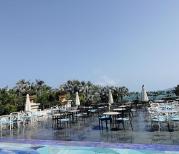 大东海离市中心最近,交通和吃东西都比较便捷,它三面环山,一面大海,整个海湾呈现迷人的月牙形,一排排翠绿椰林环抱着沙滩,辽阔的海面晶莹如镜,白沙融融、阳光熠熠,海滩和海洋也成了它的魅力所在。听当地人说到下午的时候海边会有很多俄罗斯的姑娘裸着身