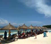 去蜈支洲岛是前一天在网上订的,包含酒店接送,船票和门票,车程45分钟到码头,导游去领门票啥的,然后如果要玩水上项目可以在导游那里定,由于9月份属于淡季,所以基本没有排队就上船了,大概20分钟左右上岛,而且这次船一点都不晃。岛上只有三分之一的