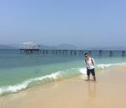 蜈支洲岛的水很清,沙滩白,沙子细,今儿阴天浪大,别有一番意境。岛上娱乐项目很多,老少皆宜,潜水,滑翔伞,海钓,电瓶车游览妈祖庙,情人岛都不错,岛上的电瓶车有三种,都是环岛的,区别在于停靠的站点不一样,中途还可以下车,到的地方比较多,想尽情欣