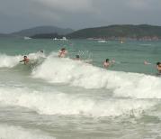 去亚龙湾玩的时候风浪很大,救生员都在海水里站着观察。浴场是免费的,有沙滩椅和遮阳伞免费使用。海上玩的项目有海上滑翔伞、摩托艇、冲浪艇,存包的小柜子要押金。海边换衣服和冲澡的地方是要付费的。