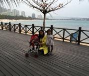 大东海这边是市中区,下榻的银泰相投酒店真心不错,房间稍微小点不过酒店环境真心好,再就是穿过酒店的花园到达后门出去就是海边,我们一家四口主要来海边度假,所以对我们来说非常棒,我们每天在酒店吃完早餐自助然后在酒店附近的水果超市买上一些水果拿到海