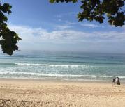带爸妈去的大东海,这个城市很美、空气、沙滩、植被还有浪花,温柔时用它那宽大的胸堂扶平那细腻的沙滩,情绪时一浪接一浪拍打沙滩,多么壮观。让人感觉非常兴奋不已。叫不上名的许多热带植被,丰富的让人目不暇接,风雨无助的南天一柱让人们留连忘返。