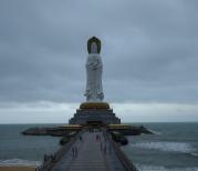 著名的南山海上观音有观音圣像一体化三尊造型,宝相庄严,脚踏一百零八瓣莲花宝座,莲花座下为金刚台,高达108米,象征永远守护者南中国海和祖国的南大门!圣像和南海浑然天成,构成了一幅壮丽的画卷!