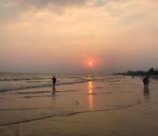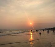 很美的落日,三亚湾度假区果然名不虚传。从4点多开始沿着海边散步,一直到5点太阳慢慢下落,一直到消逝,十月份天气渐凉,海风较大。比较了海棠湾,这边果然更好看,人也比较多,还有一些海边项目。比如摩托艇,海边降落伞等。