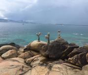 在南湾猴岛坐缆车可以看见气势如虹的疍家鱼排,十分的壮观,到了猴岛我们叫了导游,导游小姑娘很热情,还有猴子没有那么可怕,只要按照工作人员的要求做,没有什么危险的。猴岛停车场旁边的海滩海水平静,清澈适合孩子戏水,还有很多被海水冲上岸的珊瑚。
