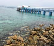 分界洲岛的海水很清很干净,因为前一天刚刚去了海口的假日海滩,相比之下,假日海滩是免费海滩,所以海水维护不是很好,而分界洲岛开发力度大,海水开发维护的也很好,周围景色相当漂亮,饮食虽然有点小贵但是全面,融合了各种口味,连清真饮食都火爆到没位置
