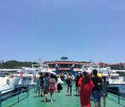 到了蜈支洲岛换票之后,就会排队坐船去岛上咯!如果有些晕船的朋友建议做到船尾的座位要好一些!当时我们去那温度有点高,岛上还是蛮热的,注意防晒是必不可少的准备工作!尽量带上遮光镜,阳光太强,如果拍照有些睁不开眼睛!我们是五月份去的,温度已经很高