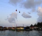 下午去的南湾猴岛,乘坐缆车上的岛,从空中俯瞰海岛景色美极了。离岛是坐渡船,正值日落时分,夕阳映红了海面,非常漂亮。说一点体会,节假日出游真不是好的选择,哪儿都是人,排长队。我们自己开车去的,等停车位花了近一个小时,坐缆车排队一个半小时,真的