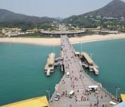 西岛景区真的非常值得去,原来很想去蜈支洲岛,不过太远了,再说游乐与海岛风光应该都差不多,还是选了西岛(西玳瑁岛)。这次去没耍海上项目,爸妈说看着太刺激了。从船上下到岸边的浮桥上就能看到小鱼,非常清澈,水质很好。丢鱼食的话,一群一群地来。一定