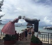去蜈支洲岛的时候受台风影响很多海上项目都关了,所以就在岛上各个景点玩的。可以选择坐电瓶车或者步行,但步行有些经典可能玩不到,个人觉得四个景点基本已经足够了,有情人谷、观日岩、情人桥、妈祖庙等。在观日岩上看海真的很震撼,海水也特别蓝,并且很有
