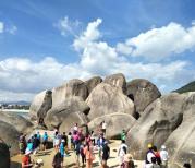 分界洲岛有大概四个景点,第一处下车点可以拍沙滩海岸,再往里走是婚纱摄影地和大洞天,还是值当一去的。电瓶车下车点和上车点都一样,上车都需要验票,一共四处,第二站名字忘记了,活动范围不大,第三站是分界洲岛石,可以上去看看,领略一下山河壮美,第四