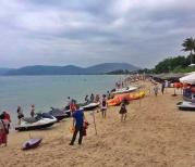 三亚亚龙湾已经开发成全国一流的度假胜地!酒店设施好、漂亮的兰色游泳池、迷人的海边沙滩,吸引着国内外的游客络绎不绝,特多的是东欧的客人。海滩上椰树随风婆娑、稻草顶的凉亭下时时看到金发碧眼,沙滩上的沙子又细又白,近处人们在游泳、远处摩托艇、香蕉