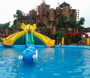 这个季节去梦幻百花洲主题景区真的没花看!稀稀拉拉几朵,都败完了,进门时取票还比较方便,人不多,进门就被人拉去照相,说是免费的,出去才发现是骗人的,大照片15一张,小的一寸的不要钱,我丟,哪有这样忽悠人的!进去后一个大泳池,我儿子可喜欢了,在