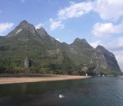九马画山是一座九峰相连、耸峙漓江江畔的大石山,是漓江山水的经典景观之一。这里的风景非常秀丽,坐船慢慢地观赏两岸的风景,如果你的想象力丰富的话,可以把连绵不断的山峰看成一个个人物造型,欣赏山水画故事。