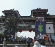 南山海上观音的观音也很震撼,很美,观音像分为三面,圣像一面是手拿莲花,另一面是手拿金书,还有一面是手拿佛珠,代表着福禄寿的人间三福,总的来说景色确实不错。因为人多,车开不进去,离寺8公里左右就让车停了,都改为免费的百度大巴车送入景点。