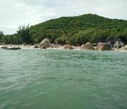 天涯海角的景色还是很美的,可以坐观光船游览,全程20分钟,船每到一个地方会停留一下等游客拍照,景点一会就看完了,但是还会在海上兜一圈,吹着风非常舒服,船忽快忽慢,时有高低浪花飞溅也有些刺激。觉得去看看还是很值得的。日月石在海中,天涯石,海角