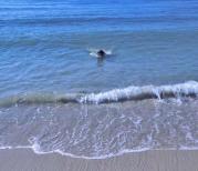 大小洞天的海边挺好玩的,早晨,海水退去,礁石间的水潭里,小鱼苗摔着身子嗖嗖地穿梭。还有海木耳,我起的名字,海花草,也是我起的名字,紧抓着礁石的边缘,一大丛一大丛地,随着波浪悠悠地摆动。礁石边缘的石苔上,偶有几个浅绿色的虫蛹一样的小东西,一头