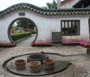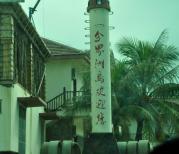 东坡书院环境十分雅致,古林幽茂,树木葱茏,鸟语啁啾。院内有一种很特别的“狗仔花”,它花蕊的形状就如同五条小狗团团围坐,非常形象。我们依次参观了大殿、载酒亭、载酒堂、奥堂龛、东坡祠、东西厢房、尊贤堂、钦帅堂、望京阁、迎宾堂、陈列馆、钦帅泉等,