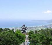 三亚南山海上观音是坐落在离海岸约两百米的人工岛上,由一条通道相连,购票入园需要徒步一段路程就可以到达,其实在飞机上就俯瞰到了这座观音像,高大宏伟庄严神圣,期待好久了终于来亲眼看看,观音像底座硕大,里面是一个展览馆可以上去观音像底座平台观光,