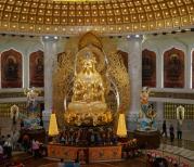 南山海上观音四面环海,据说这个海上观音比自由女神还要高15米,所以海上观音是世界上最大的石像了。观音像分为三面,圣像一面是手拿莲花,另一面是手拿金书,还有一面是手拿佛珠,代表着福禄寿的人间三福。整个的“观音净苑”景区面积近30万平方米,至少