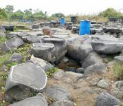 千年古盐田有750亩,距今已有1200多年历史,人们就地取材,将海边大片的天然火山岩石削去一半,凿成无数浅浅石槽,有些上面还雕凿着古朴的文字,错落有致地分布镶嵌在一垄垄、一块块的盐田周围,总数达6800多槽,平时在石槽中注入经过滤后的海水,