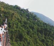 亚龙湾热带天堂森林公园真的太美了,建议下次再来的话一定要住在上面,山上的度假屋,建设的别墅外形很有意思,像鸟巢一样,无边的泳池,向下俯瞰景色特别美。冯小刚拍摄非诚勿扰的取景地,吊桥,站在上面风景也是非常之美。只是没有办法一个人在上面拍照,无