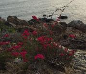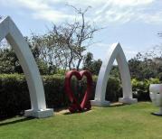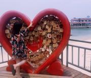 蜈支洲岛因为地点离市区较远,来之前还在犹豫是不是浪费时间,结果到岛上以后就会觉得不虚此行,真可以用鸟语花香来形容,海水比亚龙湾还清澈。我们坐的电瓶车150元的,包含全部景点可以绕岛一周。有些人工的景点看看也罢,印象最深的是三角梅林。但是岛后