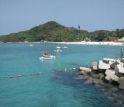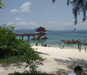 分界洲岛算中规中矩吧,忘记带小孩泳衣过去玩水,可惜了,分界洲岛很美,水很清,就是海水有点咸,呛了两口,岛上东西比较贵,比较喜欢海豚湾。水很清,沙子不够细,分界洲岛并不比西岛差,水很清澈,而且岛上还有海豚馆,很喜欢