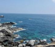 大小洞天景区不大,可以坐游览车直接到最里面下车,然后沿海边慢慢走出来,海边的风景还是相当好的,怪石林立,好多拍婚纱照的。大小洞天的海滩礁石多,风景美丽,躺在沙滩椅上看海发呆的好去处